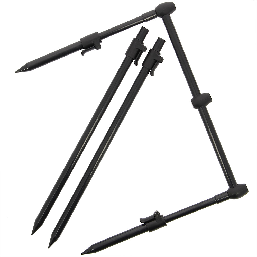 It comes with 3 pairs of bank sticks: small, medium and large. This allows you to fish close to the ground or with rods raised into the air. The length and height are adjustable and it can accomodate up to three rods. It also comes complete with free carry case. Buzz bars and bank sticks can also be used to form a goal post buzz bar set up.